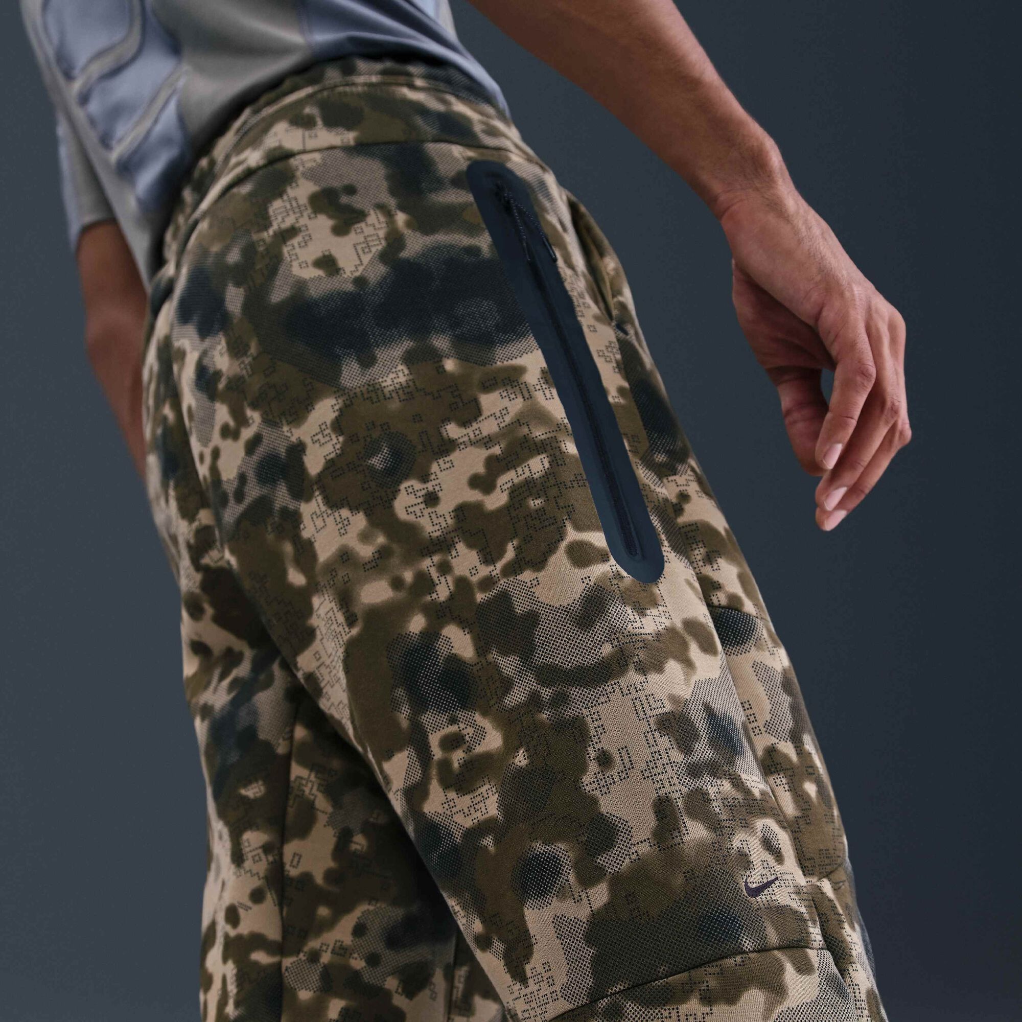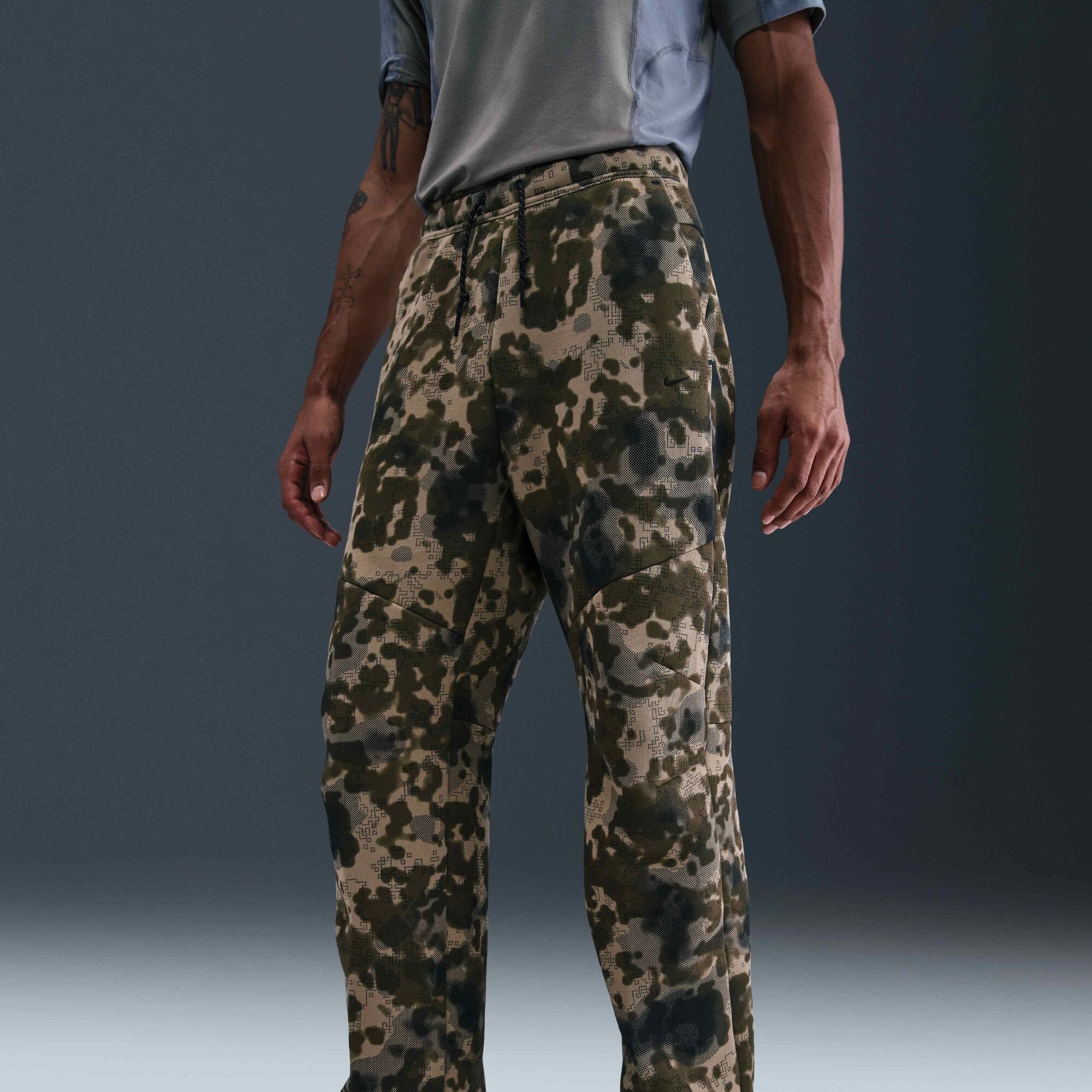 Tech Açık Paçalı Kamuflaj Desenli Fleece Eşofman Takımı Neutral Olive/Siyah