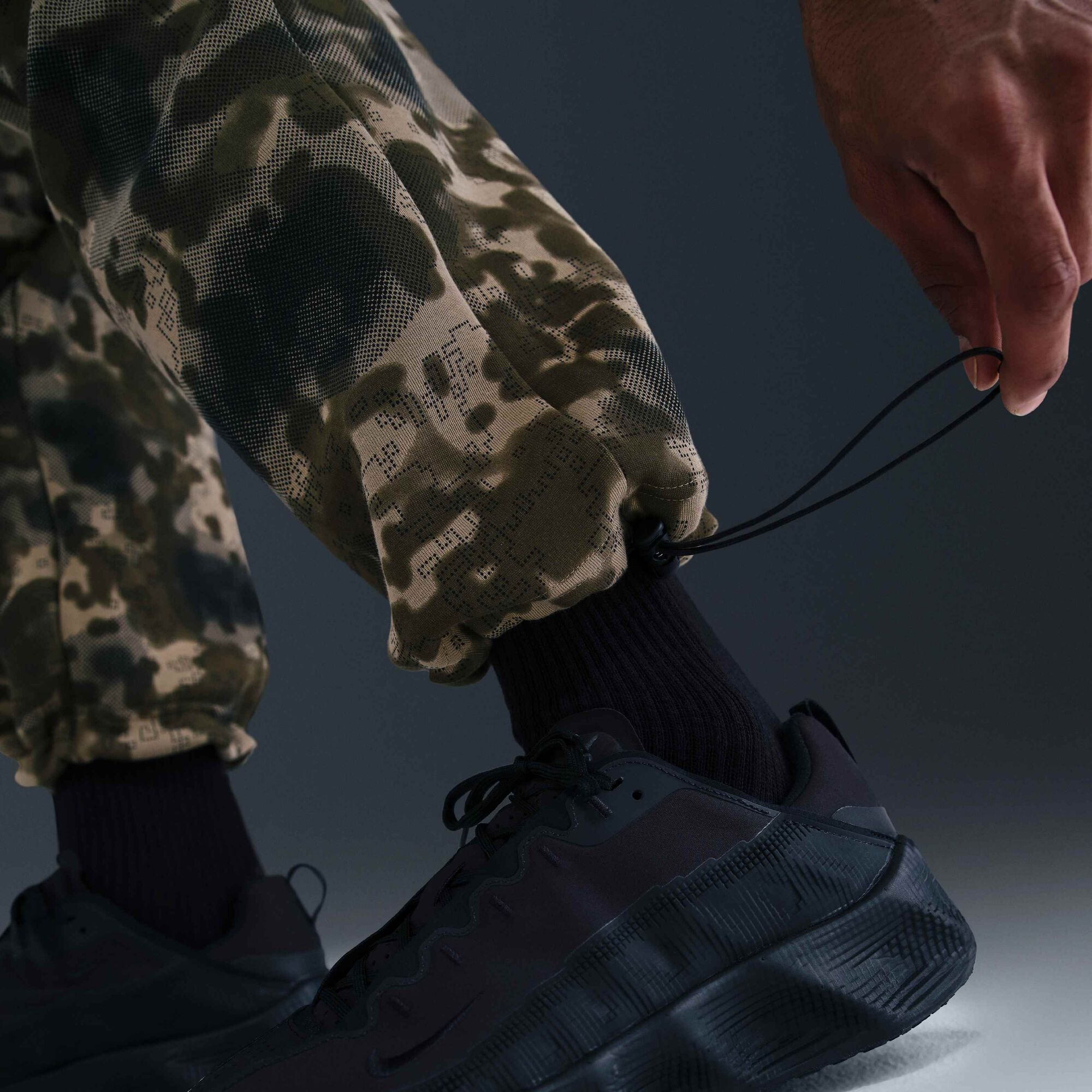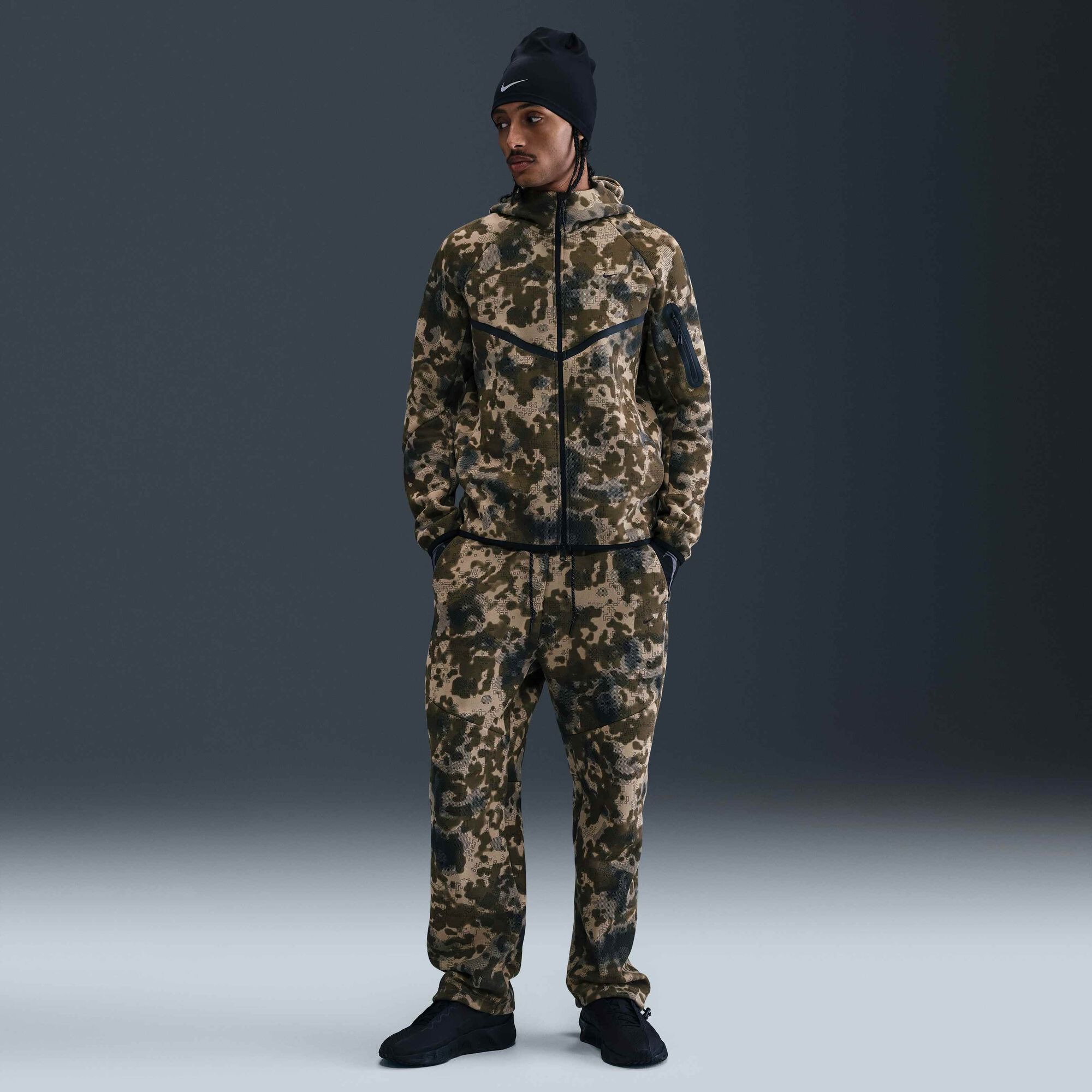 Tech Açık Paçalı Kamuflaj Desenli Fleece Eşofman Takımı Cannon/Siyah